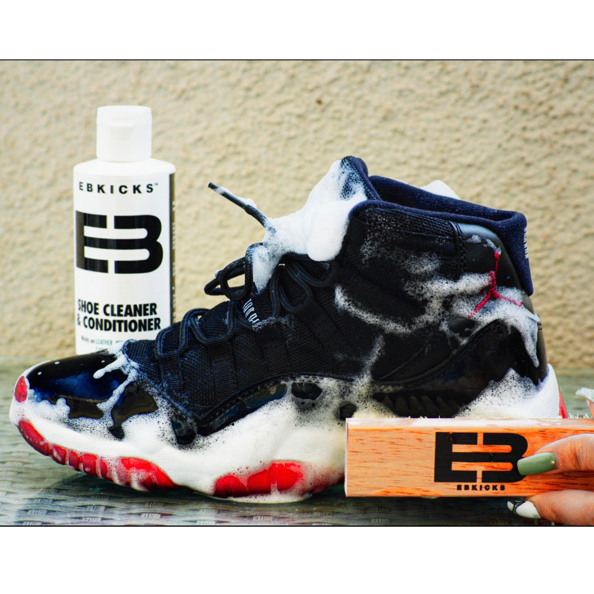 Experience the transformation! EB Kicks Shoe Cleaner restores your shoes to their original glory