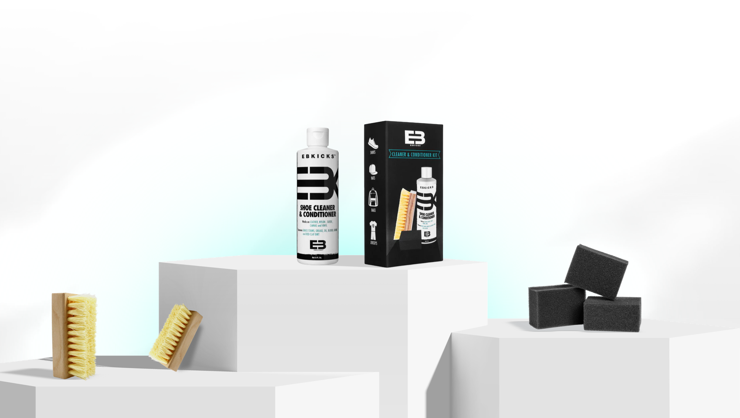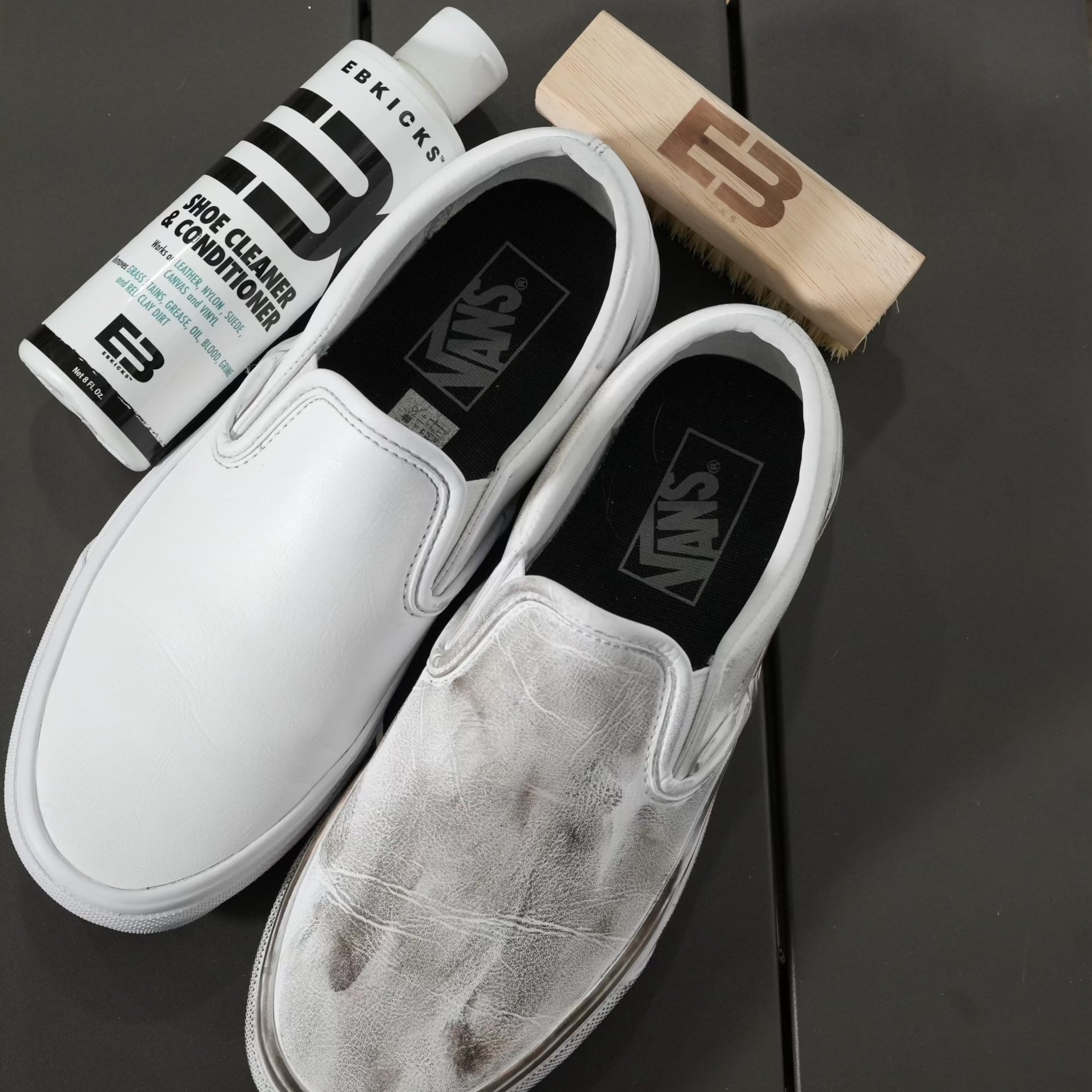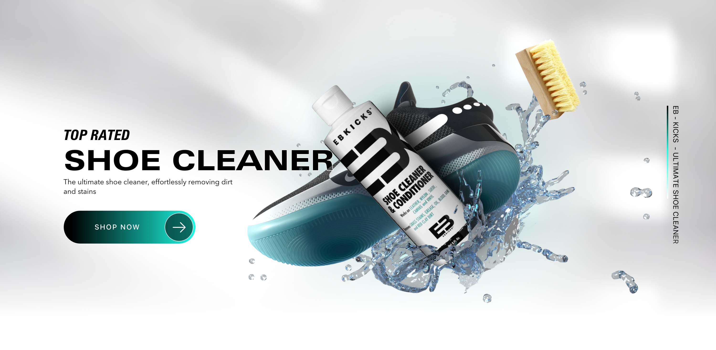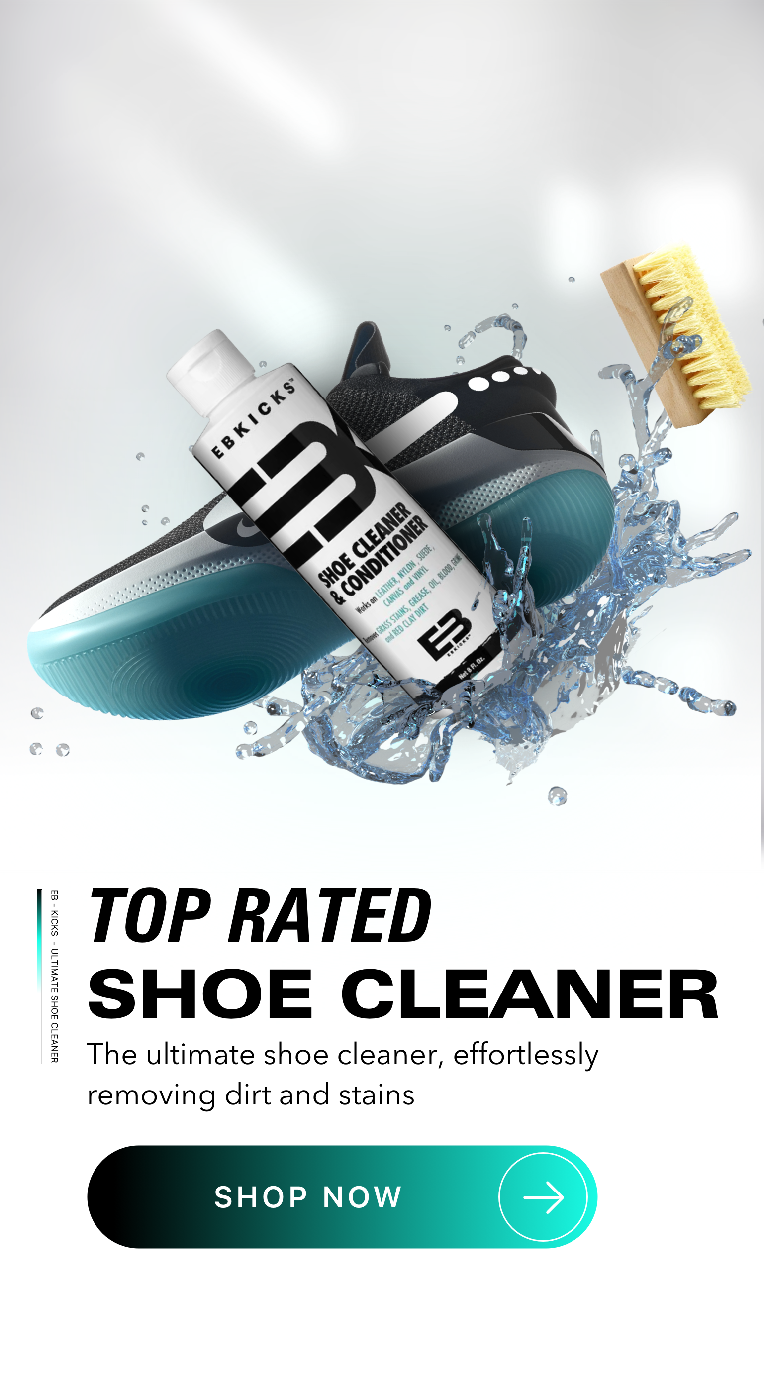Experience the transformation! EB Kicks Shoe Cleaner restores your shoes to their original glory