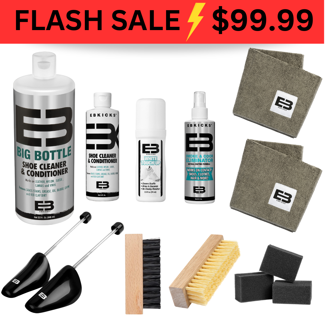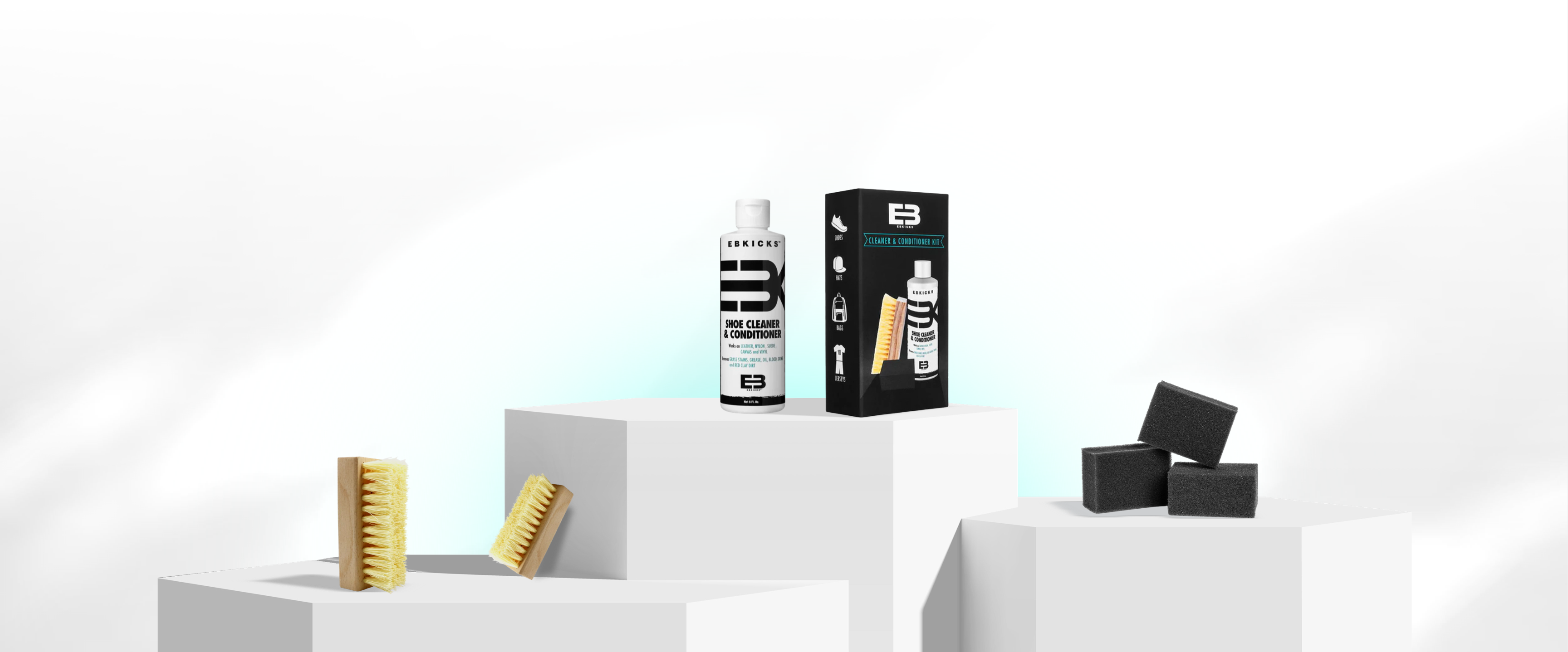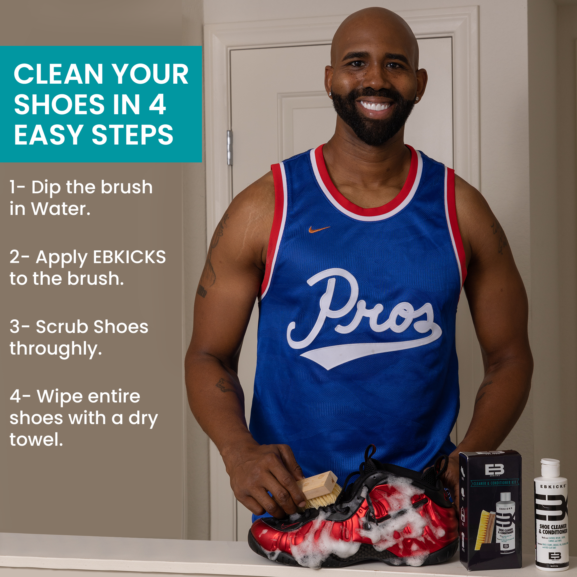 Experience the transformation! EB Kicks Shoe Cleaner restores your shoes to their original glory