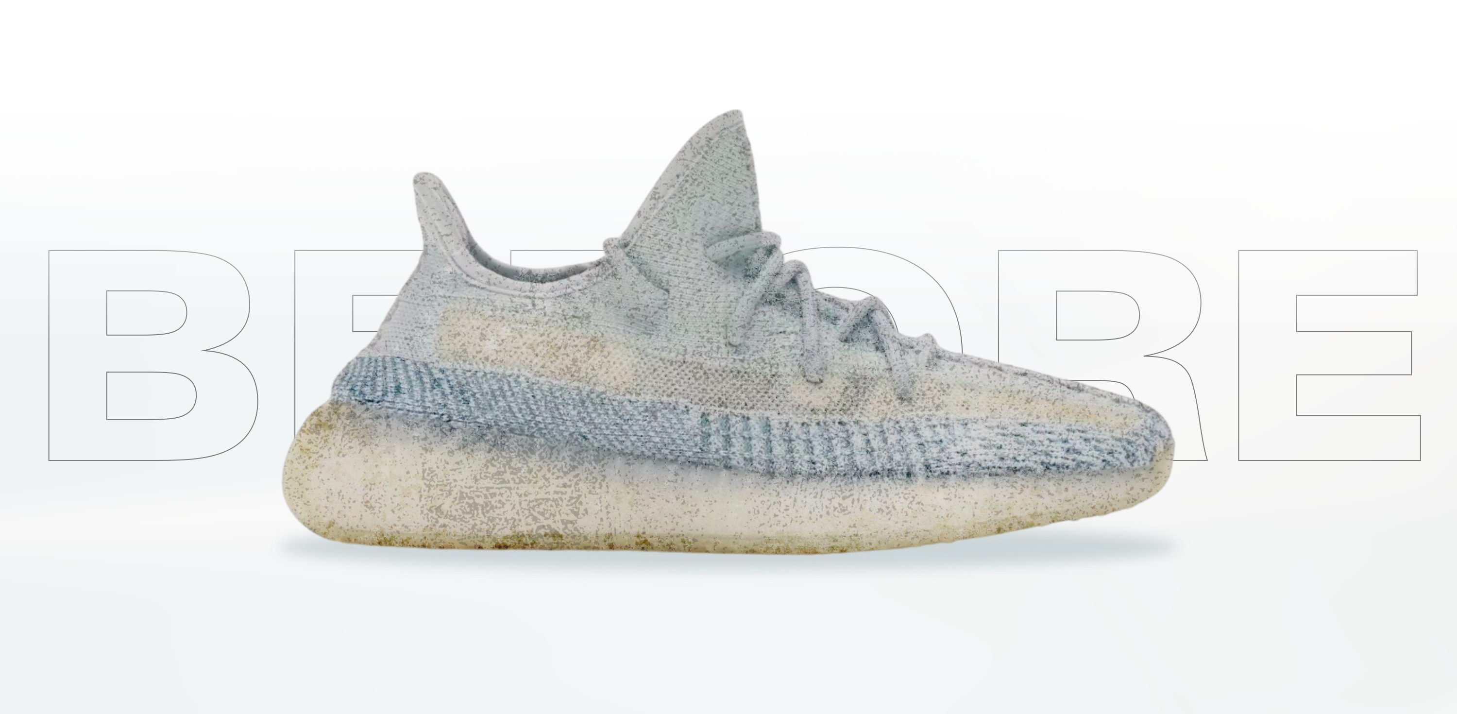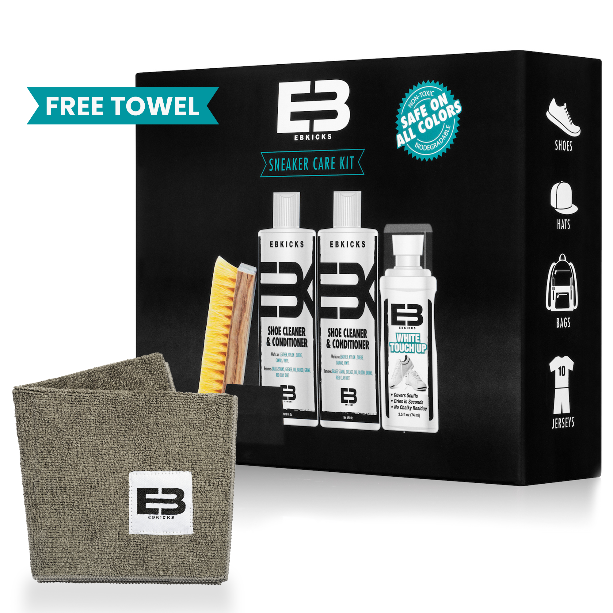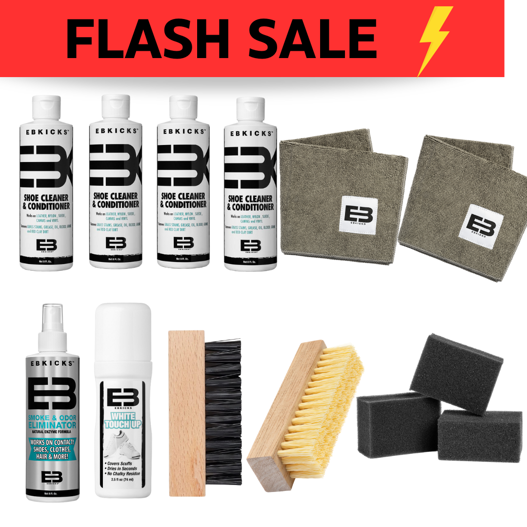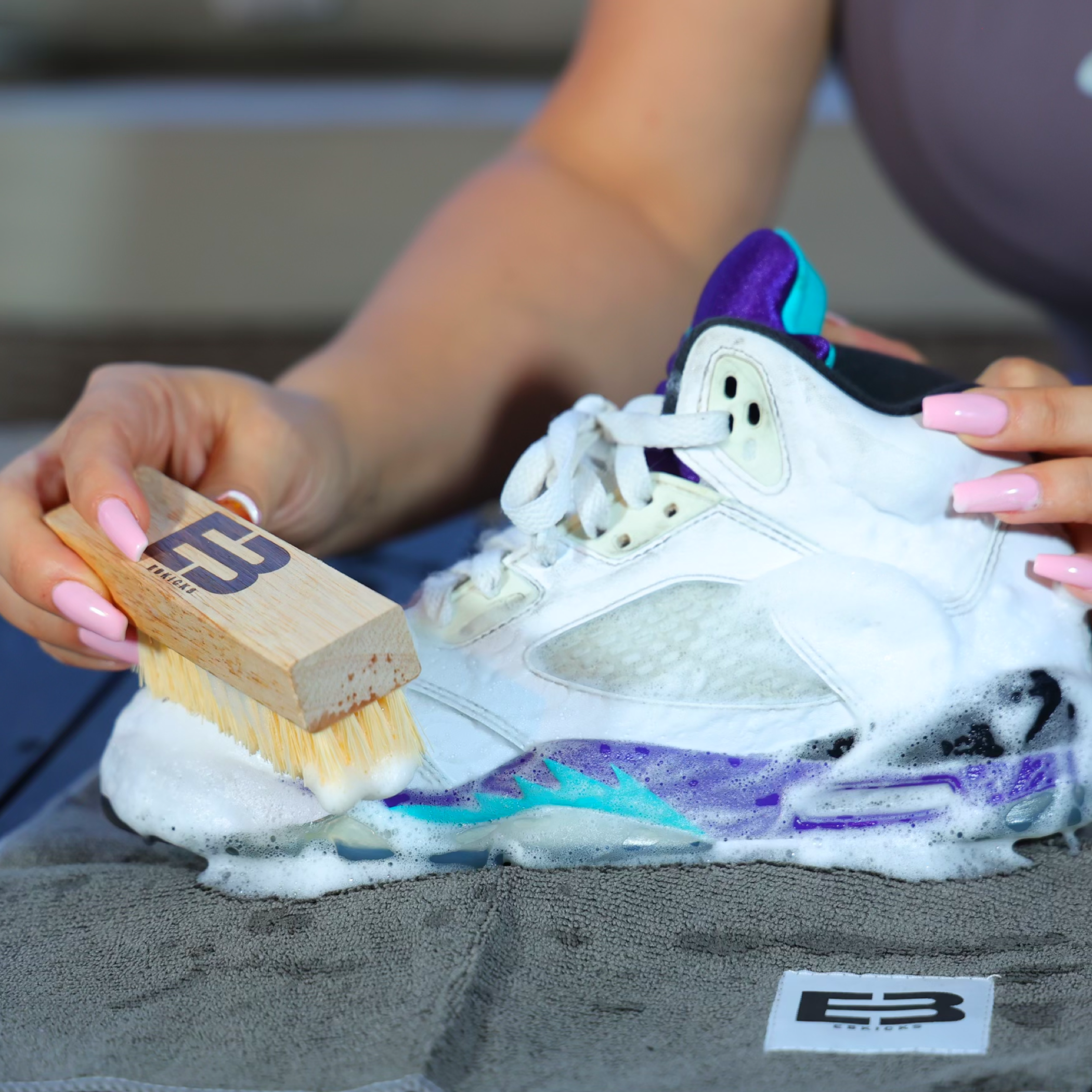 Experience the transformation! EB Kicks Shoe Cleaner restores your shoes to their original glory